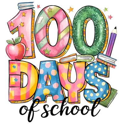 100 Days of School Celebration DTF Transfer - Watercolor Style