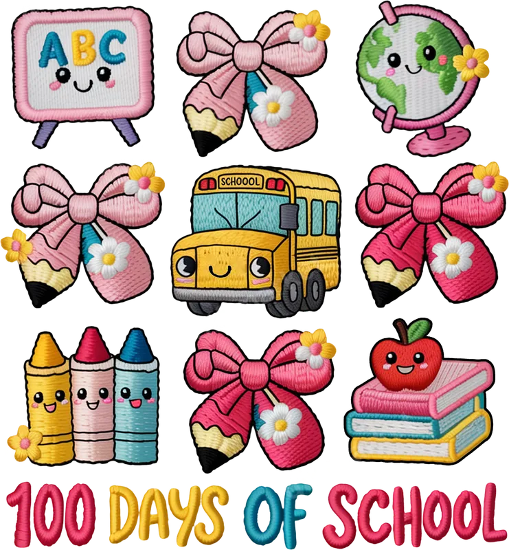 100 Days of School Cute Embroidered Style DTF Transfer Design