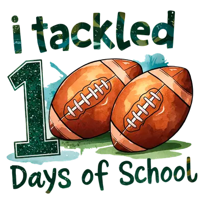 Celebrate a major school milestone with this fun and sporty "i tackled 100 Days of School" DTF transfer. Featuring two vibrant watercolor-style footballs alongside the distressed, textured lettering, this design captures the excitement of reaching 100 days of learning. It’s a perfect ready to press design for elementary school students and teachers, bringing a unique blend of academic achievement and athletic spirit to any garment. This spirited design is perfect for students, proud parents, and dedicated teachers looking to commemorate the 100th day of school. It makes an excellent iron on transfer for classroom events, school spirit days, or as a special gift to mark a significant academic accomplishment. Small t-shirt businesses and crafters will find this heat transfer design a popular choice for custom orders during the school year, especially for youth apparel. Applying this heat press transfer is simple and efficient. It adheres beautifully to a wide range of fabrics including cotton, polyester, cotton-poly blends, and even nylon. Just use a heat press set at 300-325°F for 15 seconds with medium pressure, or apply with a household iron following similar guidelines. There’s no tricky weeding required – simply peel and press! It's ideal for custom t-shirts, cozy hoodies, school sweatshirts, sturdy tote bags, baby onesies, and even aprons. For best results and lasting durability, wash garments inside out and tumble dry on low heat. Experience exceptional quality with this ready to press transfer, featuring vibrant, full-color printing and intricate details that won't crack or fade. The soft-hand feel ensures comfortable wear without the heavy, stiff texture often associated with traditional vinyl. Each direct to film transfer is printed on premium DTF film with a strong, reliable adhesive backing, guaranteeing professional-grade results that stand out every time.