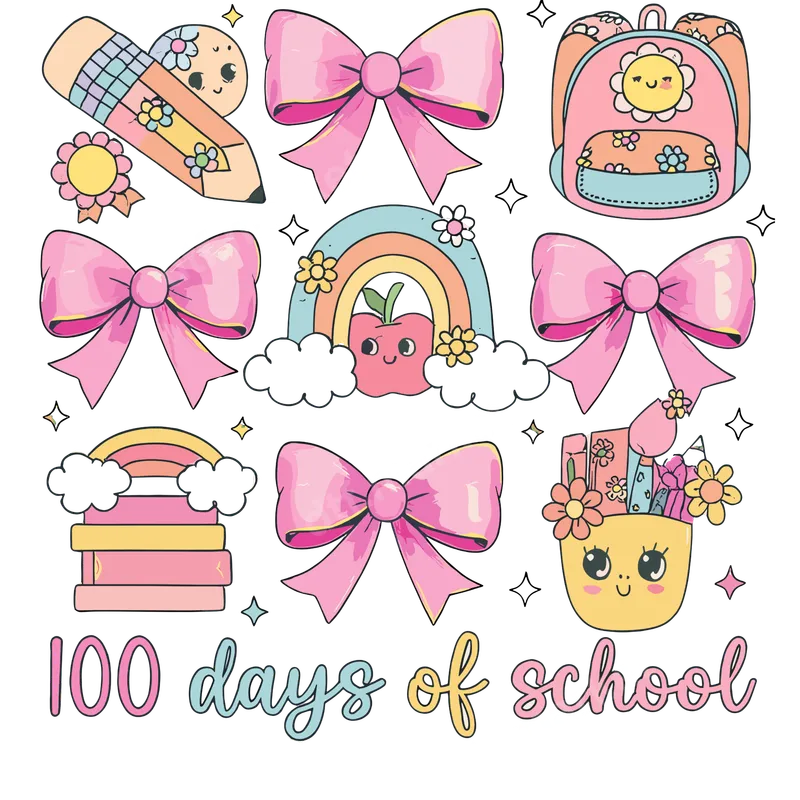 100 Days of School Kawaii DTF Transfer | Student Teacher Design