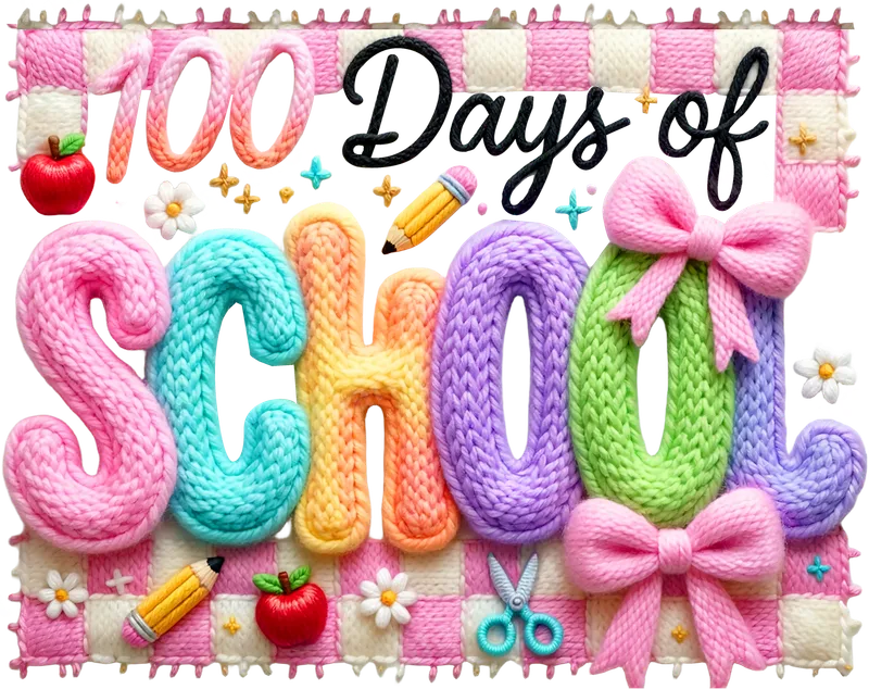 100 Days of School Knitted Font DTF Transfer | Teacher Student Celebration