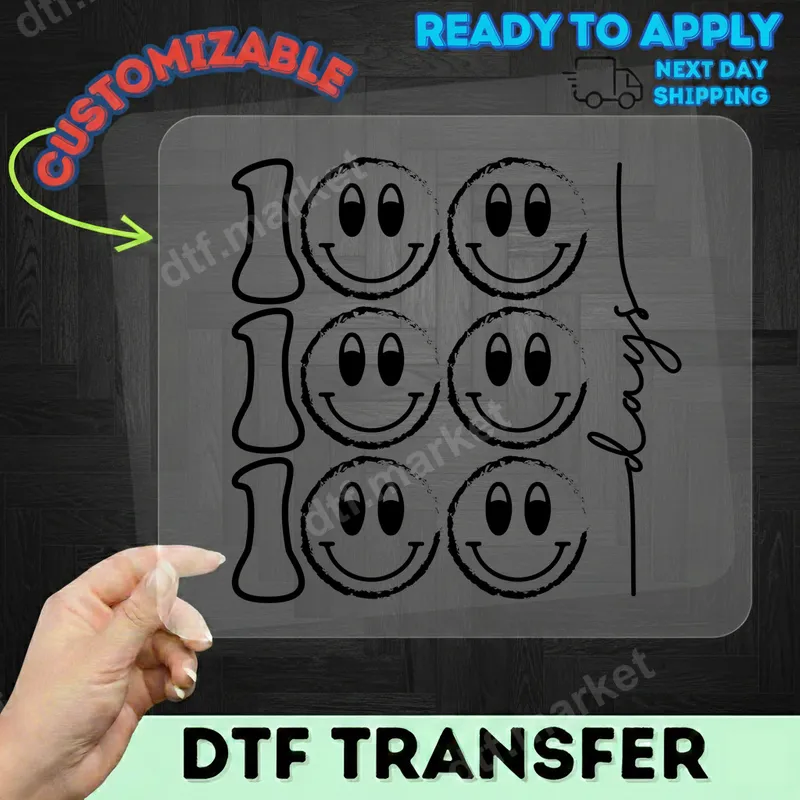 100 Days Smilies Groovy Retro School DTF Transfer Ready to Press