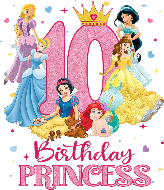 10th Birthday Princess DTF Transfer with Classic Fairy Tale Characters