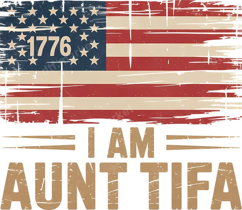 See allMake a bold statement with our "I AM AUNT TIFA" DTF transfer, featuring a distressed vintage American flag proudly displaying "1776" in the star field. This unique design blends classic patriotic elements with a modern, humorous twist, making it a standout choice for those with a keen sense of humor and a love for American history. This high-quality DTF transfer arrives ready to press onto your favorite apparel, offering a unique way to express your personality. This "Aunt Tifa" heat transfer is perfect for anyone who appreciates clever wordplay and patriotic humor. It's an ideal choice for 4th of July celebrations, Memorial Day, political rallies, or simply as a conversation starter in everyday wear. Surprise friends or family with this witty iron on decal, making it a fantastic gift for birthdays, holidays, or just because. Show your unique spirit with this memorable design. Applying this heat press design is incredibly simple. Our premium DTF transfers work seamlessly on a wide range of fabrics, including cotton, polyester, and various blends. For best results, use a heat press at 300-325°F for 15 seconds with medium pressure. It can also be applied with a high-quality household iron, following included instructions. Best of all, there's no weeding or complex layering required, making customization quick and effortless. Experience professional-grade results with our durable and vibrant apparel transfer. Each "1776 Aunt Tifa" transfer boasts incredibly vivid colors and sharp details, designed to resist cracking and fading even after multiple washes. The print feels soft to the touch and stretches with the fabric, ensuring long-lasting wear and comfort. Crafted using professional DTF film and strong adhesive, this ready to press transfer provides a high-quality finish every time.