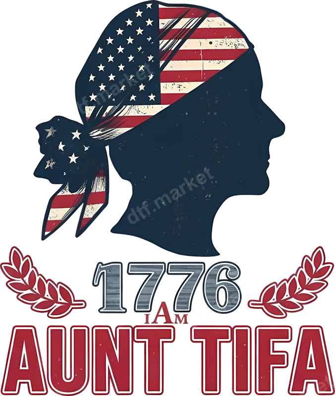 See allThis distinctive DTF transfer features a powerful design celebrating American independence and a strong female spirit. It showcases a silhouette of a woman's head, adorned with a distressed American flag bandana, subtly incorporating the stars and stripes. Below the figure, the bold declaration "1776 I AM AUNT TIFA" is displayed, flanked by laurel wreaths, making a clear and opinionated statement. This ready to press transfer is perfect for those who want to express their unique blend of patriotism and individuality. This unique heat transfer is ideal for individuals who embrace their American heritage with an outspoken twist. It's a fantastic choice for Fourth of July, Memorial Day, Veterans Day, or any patriotic event where you want to stand out. Gifting this ready to press design to friends or family who appreciate historical references and modern wit will personalize their gear. Applying this apparel transfer is straightforward and hassle-free, compatible with cotton, polyester, and blends. For best results, use a heat press at 300-325°F for 15 seconds with medium pressure. A household iron can also be used. Enjoy the convenience of a durable, high-quality iron on decal that requires no weeding, saving you time and effort. Our premium DTF transfers are known for their exceptional quality, delivering vibrant, crisp colors and intricate details. Each direct to film transfer is crafted to be crack-resistant and incredibly soft to the touch, ensuring comfort and longevity. Manufactured using professional-grade DTF film with strong adhesive, these transfers provide a superior, long-lasting finish that will withstand countless washes.