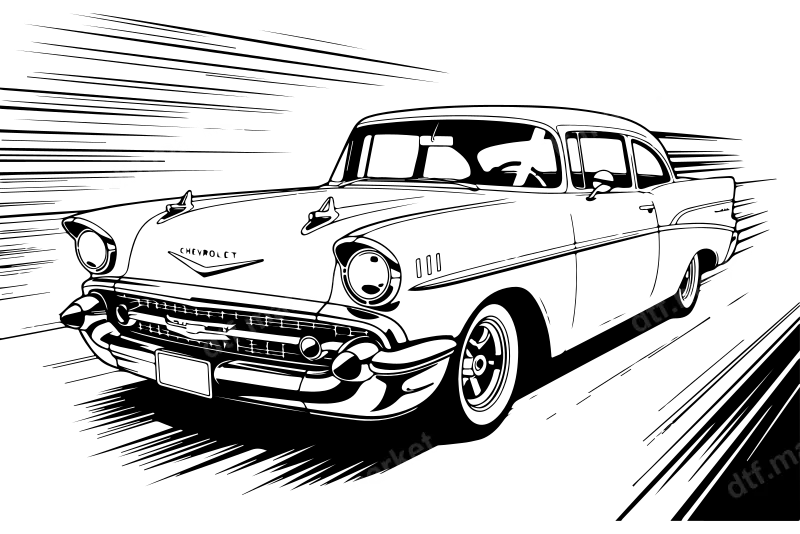 See allCruise back in time with this sleek 1957 Chevrolet Bel Air DTF transfer, an iconic black and white line art design that captures the spirit of American automotive history. Featuring dynamic speed lines, this ready to press transfer brings a thrilling, vintage energy to any garment or accessory. It's a perfect homage to classic car culture, embodying nostalgia and timeless style for enthusiasts and collectors alike. This design is a must-have for classic car enthusiasts, hot rod fans, and anyone with an appreciation for 1950s Americana. It makes an exceptional gift for dads, grandpas, or gearheads for birthdays, Father's Day, or simply to celebrate their passion. Ideal for car club events, vintage-themed parties, or adding a touch of retro cool to everyday apparel, this heat press transfer is sure to turn heads. Applying this vibrant direct to film transfer is straightforward, whether you're a seasoned crafter or a beginner. Compatible with a wide range of fabrics including cotton, polyester, and blends, it ensures versatility for all your projects. Simply use a heat press at 300-325°F for 15 seconds with medium pressure, or apply with a household iron. Enjoy a professional finish without the hassle of weeding, making custom shirt designs quicker than ever. Experience superior quality with our premium DTF transfers, known for their vibrant colors and exceptional durability. This iron on transfer is designed to be crack-resistant, peel-resistant, and incredibly soft to the touch, ensuring your custom apparel stands up to countless washes. Crafted from professional-grade DTF film with a strong adhesive, it provides a long-lasting, high-quality application that feels integrated into the fabric.