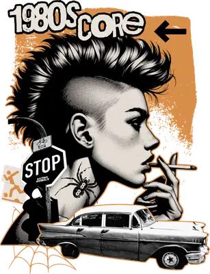 Unleash your inner rebel with this captivating 1980s Core DTF transfer, a bold tribute to vintage punk and activist spirit. This ready to press design features a striking profile of a mohawked girl with a cool, detached expression, cigarette in hand, embodying classic 80s counter-culture. Below her, a beautifully detailed vintage classic car adds a touch of retro Americana, while a 'STOP EATING ANIMALS' sign underscores a powerful message. A subtle spider tattoo with '88' detail and a grunge-style orange background complete this iconic, edgy look. This unique iron on transfer is perfect for individuals who embrace alternative fashion, 80s enthusiasts, classic car lovers, and passionate vegan activists. It makes an incredible gift for friends and family who appreciate punk rock aesthetics, vintage style, or advocate for animal rights. Ideal for customizing apparel for music festivals, themed parties, car shows, or simply making a bold statement in everyday wear. Small boutique owners and Etsy t-shirt sellers can easily incorporate this distinctive heat transfer design into their edgy clothing lines. Applying this heat press transfer is incredibly simple, making it suitable for crafters and businesses alike. It adheres flawlessly to a wide range of fabrics including cotton, polyester, cotton-poly blends, and even nylon. For best results, use a heat press at 300-325°F for 15 seconds with medium pressure, or apply with a household iron. There's no tedious weeding required—just peel, press, and admire your new custom t-shirt! Perfect for hoodies, sweatshirts, tote bags, pillow covers, and denim jackets. For lasting durability, wash garments inside out and tumble dry low. Experience premium quality with every ready to press transfer from dtf.market. This design boasts vibrant, full-color printing that captures every fine detail, from the girl's intricate mohawk to the classic car's chrome accents. Our direct to film transfer technology ensures a crack-resistant finish that's soft to the touch, unlike heavy vinyl transfers. Each apparel transfer is printed on high-grade DTF film with a robust adhesive backing, guaranteeing professional, long-lasting results that elevate your garments.