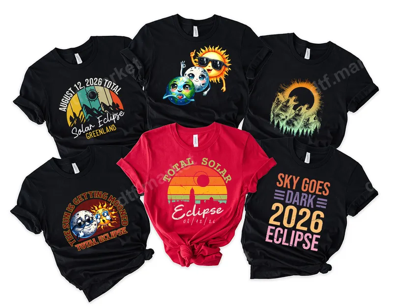 See allThese vibrant DTF transfers capture the excitement of the August 12, 2026 Total Solar Eclipse. Featuring a diverse range of artistic styles—from playful sun and moon characters to serene landscapes with wolves, and specific Greenland event designs—this collection offers a unique way to commemorate the celestial spectacle. Each design is a high-quality, ready to press direct to film transfer, perfect for creating custom apparel. This collection of heat press transfers is ideal for anyone anticipating the 2026 Total Solar Eclipse. Perfect for eclipse chasers, astronomy clubs, science enthusiasts, or anyone celebrating this rare event, these designs make fantastic custom t-shirts for viewing parties, educational gatherings, or as memorable souvenirs. They are also excellent gifts for friends and family who share a passion for cosmic phenomena. Applying these iron on transfers is incredibly easy, suitable for various fabrics including cotton, polyester, and blends. For professional results, use a heat press at 300-325°F for 15 seconds with medium pressure, followed by a cool peel. A household iron can also be used. The best part? There’s no weeding required, saving you time and effort compared to traditional vinyl transfer methods. Crafted with premium DTF film and eco-friendly inks, these apparel transfers ensure vibrant colors and exceptional durability. The resulting shirt design is incredibly soft, crack-resistant, and washable, designed to maintain its professional finish through many wears. Elevate your custom merchandise or personal wardrobe with these top-tier, heat press ready designs that truly stand out.