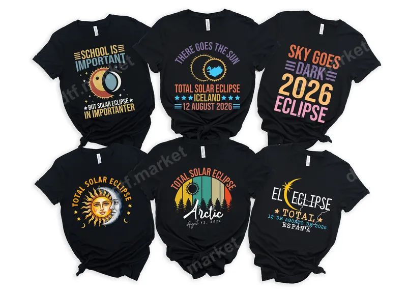 See allImmerse yourself in the celestial wonder of the upcoming 2026 Total Solar Eclipse with this vibrant collection of DTF transfers. Featuring a range of unique designs, from a humorous "School is important, but solar eclipse is importanter" motif to retro-inspired graphics commemorating the Iceland, Arctic, and Spain viewing events on August 12, 2026. Each high-quality design is a ready to press transfer, perfect for celebrating this rare astronomical phenomenon. These distinctive designs are ideal for eclipse chasers, astronomy enthusiasts, science educators, and anyone planning to witness the 2026 eclipse in Iceland, the Arctic, or Spain. Create memorable souvenirs for your travel group, custom apparel for viewing parties, or unique gifts for fellow space lovers. They also make excellent iron on transfers for students and teachers celebrating the educational aspect of the event. Our direct to film transfers are incredibly versatile, pressing beautifully onto a wide array of fabrics including cotton, polyester, and various blends. Applying your heat press design is simple: use a heat press at 300-325°F for 15 seconds with medium pressure, then cold peel. For smaller projects or home crafters, these durable transfers can also be applied with a household iron, making them an accessible choice for everyone. No weeding or layering required! Experience professional-grade quality with every apparel transfer. These DTF transfers boast incredibly vibrant colors, exceptional detail, and a soft-to-touch feel that integrates seamlessly with your garment. Designed to be crack-resistant and highly durable, they ensure your custom transfer designs will withstand countless washes, keeping your eclipse memories bright for years to come.