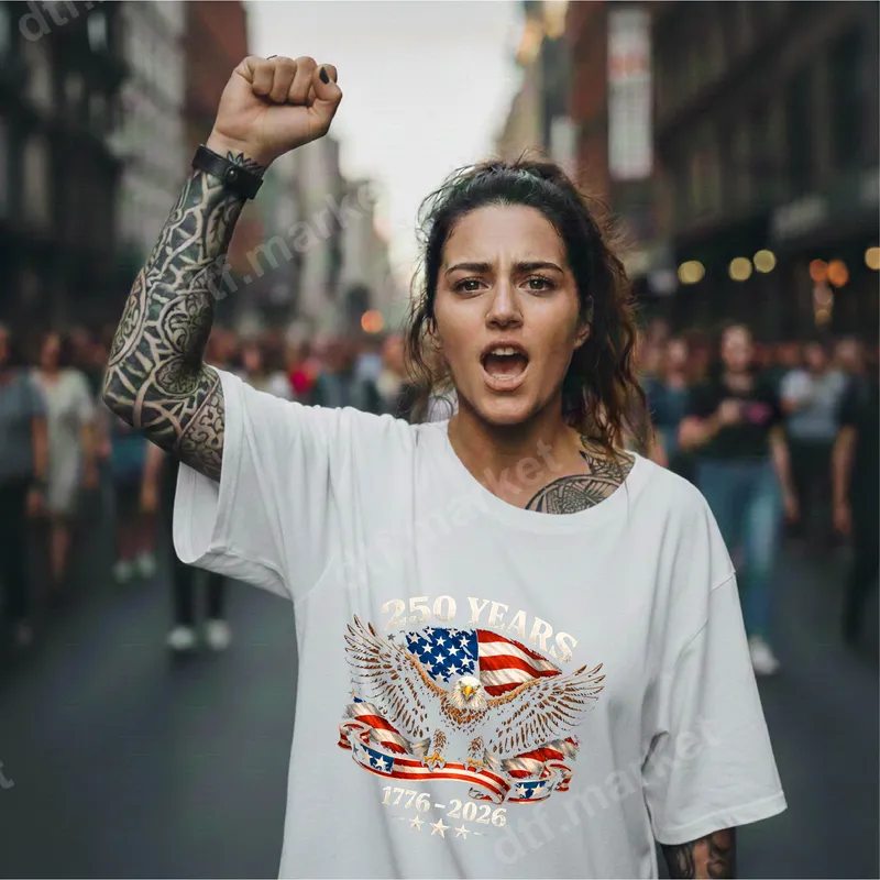 See allThis vibrant DTF transfer proudly commemorates 250 years of American independence, spanning 1776-2026. The design features a majestic bald eagle with outstretched wings, soaring against a beautifully unfurled American flag backdrop. This ready to press design embodies patriotism, freedom, and historical pride, making it a powerful statement piece for any garment. This patriotic heat transfer is ideal for history enthusiasts, veterans, military families, and anyone who cherishes American heritage. It’s perfect for celebrating national holidays like the 4th of July, Memorial Day, or Veteran's Day, as well as historical commemorations. It also makes a thoughtful gift for birthdays or special events for those proud of American history and values. Applying this versatile iron on transfer is straightforward. It adheres perfectly to a wide range of fabric types, including cotton, polyester, and various blends. For best results, use a heat press at 300-325°F for 15 seconds with medium pressure, then cold peel. For smaller projects, a household iron can also be used. Enjoy the convenience of a ready to press transfer with no tedious weeding required. Our professional-grade DTF transfers deliver exceptional quality, ensuring your apparel transfer is vibrant, durable, and soft to the touch. Each heat press design is printed on premium DTF film with a strong, long-lasting adhesive that resists cracking and fading, even after multiple washes. Experience retail-quality results that make your custom transfer stand out.