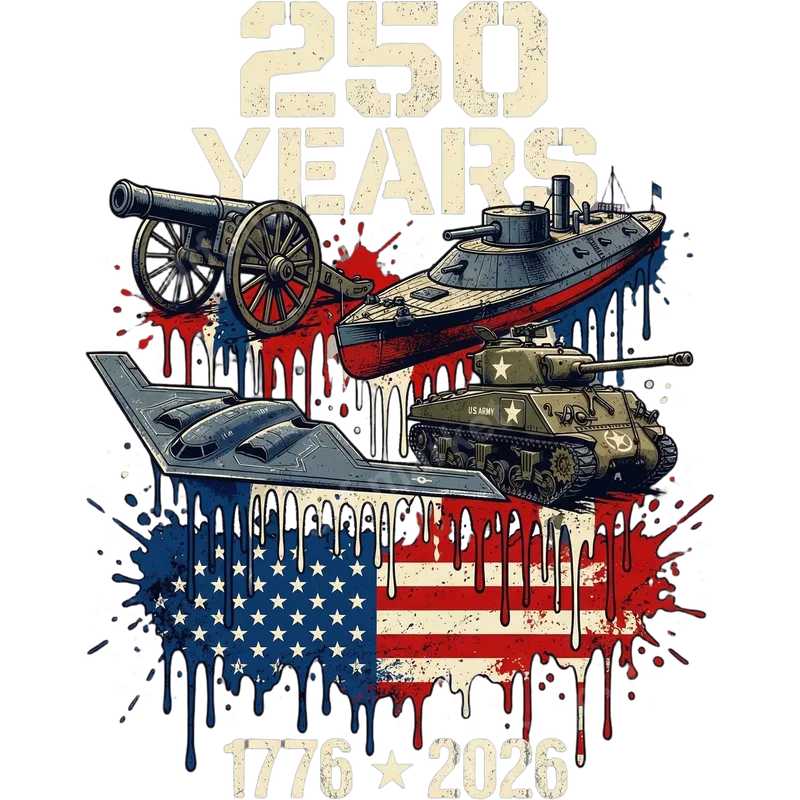 See allCelebrate 250 years of American spirit with this striking "250 Years 1776-2026" DTF transfer. This ready to press design showcases the evolution of American military might, from a colonial cannon and a historic warship to a classic WWII tank and a modern stealth bomber, all set against a dynamically distressed and dripping American flag backdrop. It's a powerful statement of patriotism and national pride. This unique heat press transfer is ideal for anyone looking to honor the United States' rich history and military legacy. Perfect for veterans, active service members, military families, history enthusiasts, and proud Americans. It makes an excellent iron on transfer for celebrating national holidays like the 4th of July, Memorial Day, or Veterans Day, or as a thoughtful gift for patriotic friends and family. Applying this apparel transfer is simple and efficient. Designed for versatility, it adheres beautifully to various fabrics including cotton, polyester, and blends. For best results, use a heat press at 300-325°F for 15 seconds with medium pressure. It can also be applied with a household iron with care. The beauty of a DTF transfer is that there's no weeding or layering required – just press and peel! Expect professional-grade results with this high-quality heat transfer design. Our direct to film transfers boast vibrant colors, exceptional durability, and a soft, flexible feel that resists cracking and fading after multiple washes. Each custom transfer is printed on premium DTF film with a strong adhesive, ensuring your design looks fantastic and lasts for years on your favorite t-shirts, hoodies, or bags.