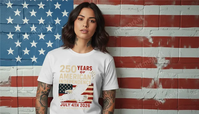 See allCelebrate a monumental milestone with this striking '250 Years of American Independence' DTF transfer. This design proudly features bold, distressed patriotic text, the significant date 'July 4th 2026,' and the 'Semiquincentennial' declaration. Set against a vintage American flag backdrop, a majestic bald eagle in flight adds a powerful touch. This high-quality direct to film transfer is ready to press onto your favorite apparel, effortlessly showcasing your patriotism. This exceptional heat press transfer is perfect for proud Americans, history enthusiasts, veterans, and military families. It's an ideal choice for the 4th of July, Memorial Day, Veterans Day, election events, or any national holiday. Share your love for the USA or create a meaningful gift that honors America's enduring legacy. Applying this iron on transfer is straightforward and efficient, working beautifully on cotton, polyester, and various blends. For best results, use a heat press at 300-325°F for 15 seconds with medium pressure, followed by a cold peel. A household iron can also be used. Unlike traditional vinyl transfer, there's no tedious weeding or layering required. Experience vibrant, rich colors and a soft, comfortable feel that becomes part of the fabric. Our premium DTF film ensures your design is incredibly durable, crack-resistant, and boasts superior washability. This professional-grade apparel transfer will help you create custom garments that look fantastic and last for years, celebrating America's independence in style.