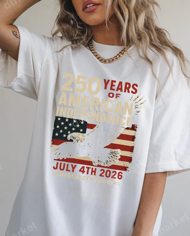 See allThis impactful DTF transfer commemorates "250 Years of American Independence" for July 4th, 2026. The design features a majestic bald eagle soaring over a distressed American flag backdrop, with bold, vintage-style typography highlighting the upcoming Semiquincentennial. This ready to press design captures the spirit of freedom and patriotism, perfect for creating unique apparel that celebrates a significant historical milestone. Ideal for patriots, history buffs, and anyone looking to show their American pride, this heat transfer is perfect for Independence Day celebrations, Memorial Day events, or as a thoughtful gift for veterans and service members. Create custom t-shirts for family gatherings, commemorative hoodies for historical societies, or unique accessories to wear to fireworks displays. It's a powerful way to honor two and a half centuries of American liberty. Applying this apparel transfer is effortless. It's suitable for a wide range of fabrics, including cotton, polyester, and various blends, making it a versatile choice for any garment. For best results, use a heat press at 300-325°F for 15 seconds with medium pressure, then cold peel. A household iron can also be used with care. Unlike traditional vinyl transfer methods, there's no weeding required, saving you time and effort. Crafted with professional-grade DTF film, this heat press design ensures brilliant, vibrant colors that stand the test of time. Our transfers are crack-resistant, peel-proof, and offer a soft, smooth feel once applied to your chosen fabric. The strong adhesive guarantees a long-lasting finish, allowing your celebratory garment to be cherished for years to come. This high-quality iron on transfer delivers a professional look every time.
