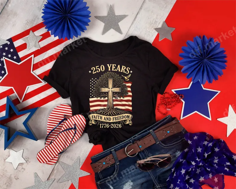 See allThe design features a majestic tree-cross rooted in the American flag, beautifully commemorating "250 YEARS" of "FAITH AND FREEDOM" from "1776-2026". A symbol of enduring strength and liberty, this inspiring DTF transfer captures the essence of American heritage. It's a vibrant, ready to press design perfect for celebrating national pride with a spiritual touch, ideal for the upcoming 250th anniversary. This powerful heat press transfer is ideal for patriots, faith-based groups, veterans, and anyone who cherishes American history and its founding principles. It makes a meaningful statement for Fourth of July celebrations, Memorial Day, patriotic gatherings, or as a thoughtful gift for family and friends. Honor our nation's legacy and spiritual foundation with this unique design. Our premium iron on transfer is designed for easy application across a wide range of fabrics, including cotton, polyester, and various blends. Achieve professional results with a heat press set at 300-325°F for 15 seconds with medium pressure, or apply carefully with a household iron. Forget tedious weeding; this t-shirt transfer arrives pre-printed and ready to press directly onto your chosen garment. Experience unmatched quality with our direct to film transfers. Each design boasts vibrant colors, exceptional detail, and a soft, flexible feel that resists cracking and peeling, ensuring longevity for your custom apparel. Made with professional-grade DTF film and strong adhesive, your finished garment will look factory-produced, wash after wash.