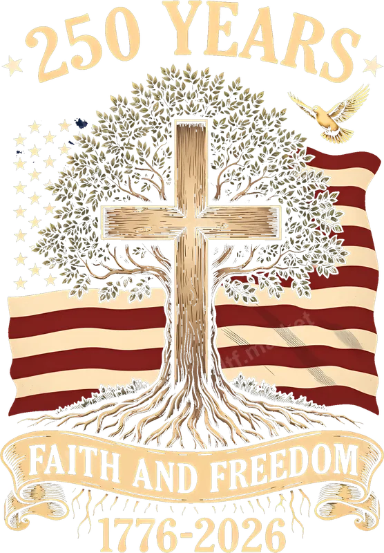 See allThis powerful DTF transfer design commemorates "250 YEARS" of American history, spanning from "1776-2026" with a profound message of "FAITH AND FREEDOM." The centerpiece features a rustic wooden cross, artfully designed as the strong trunk of a flourishing tree, symbolizing deep roots and enduring growth. Waving proudly in the background is a distressed American flag, complete with stars and stripes, while a majestic dove in flight represents peace and divine guidance. This ready to press design beautifully blends patriotism and spiritual conviction, making it a truly meaningful piece. Ideal for patriots, Christian Americans, history enthusiasts, and anyone who cherishes the foundational values of the United States, this design is perfect for numerous occasions. It makes an excellent gift for Veterans Day, Memorial Day, Independence Day (4th of July), church gatherings, or as a proud statement for everyday wear. Whether you're commemorating a significant anniversary or simply expressing your love for God and country, this apparel transfer allows you to wear your beliefs. Our premium direct to film transfers are incredibly versatile and simple to apply, compatible with cotton, polyester, and various fabric blends. Using a heat press, apply at 300-325°F for 15 seconds with medium pressure, then cold peel for a professional finish. For smaller projects or personal use, a household iron can also be used, making this an accessible iron on decal for everyone. Best of all, there’s no tedious weeding required, saving you time and effort. Experience exceptional quality with our vibrant, crack-resistant heat press transfers. Crafted on professional-grade DTF film with a strong, long-lasting adhesive, these designs offer a soft-to-touch feel and superior durability. Ensure your garments make a lasting impression with a transfer that withstands washes and wear, maintaining its rich detail and color.