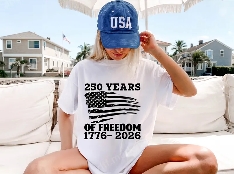 See allShow your patriotic pride with our '250 Years of Freedom 1776-2026' DTF transfer. This striking design features a distressed, black and white American flag, boldly proclaiming a significant milestone in U.S. history. It's a powerful statement piece, perfect for celebrating enduring liberty and national heritage. As a ready to press transfer, it makes customizing your apparel incredibly easy and professional-looking. This commemorative heat transfer is ideal for history enthusiasts, veterans, patriots, and anyone proud of American freedom. It's excellent for national holidays like the 4th of July, Memorial Day, or Veterans Day, and especially relevant for 2026 celebrations. Create custom t-shirts for family reunions, commemorative events, or as meaningful gifts for friends and loved ones who cherish the nation's bicentennial journey. It's a unique heat press design that stands out. Applying this apparel transfer is straightforward. Our high-quality DTF transfers work seamlessly on cotton, polyester, and various blends. For best results, use a heat press at 300-325°F for 15 seconds with medium pressure. A household iron can also be used. Best of all, there's no weeding required, saving you time and effort to get your custom transfer onto your chosen garment quickly. Our DTF transfers are crafted for exceptional durability and visual appeal. You'll enjoy vibrant contrast, a crack-resistant finish, and a soft, smooth feel that integrates beautifully with the fabric. Each heat press ready transfer is printed on professional-grade DTF film with strong adhesive, ensuring your design lasts wash after wash. Experience premium quality for all your shirt design needs.