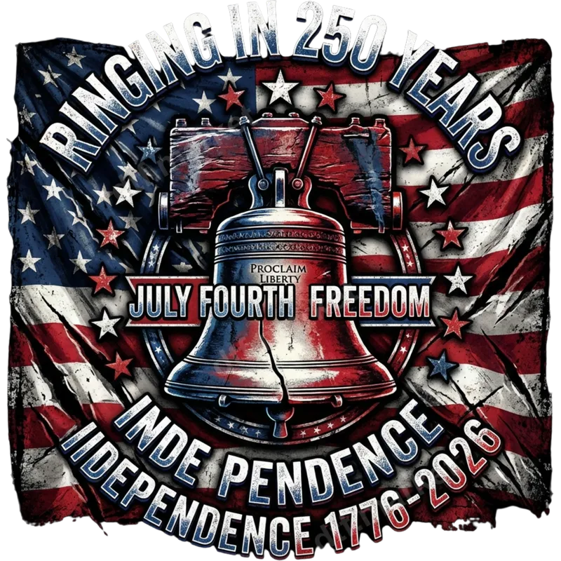 See allThis powerful design features a vintage-style distressed American flag background with a prominent, cracked Liberty Bell. Arcing text reads "RINGING IN 250 YEARS" above, "JULY FOURTH FREEDOM" across the bell, and "INDEPENDENCE 1776-2026" below, commemorating the upcoming 250th anniversary of American independence. This patriotic DTF transfer captures a rustic, proud, and historical American spirit, making it a compelling ready to press design for any project. This impactful heat press transfer is ideal for anyone who cherishes American history and patriotism. It's perfect for celebrating Independence Day, Memorial Day, Veterans Day, or any occasion to show national pride. Great for creating custom apparel for family gatherings, historical events, or as a meaningful gift for veterans, history enthusiasts, or proud Americans looking forward to the 250th anniversary in 2026. Applying this vibrant design is straightforward, whether you're using a professional heat press or a household iron. Our high-quality heat press design adheres beautifully to a wide range of materials, including cotton, polyester, and various fabric blends. For best results, use a heat press at 300-325°F for 15 seconds with medium pressure. There's no tedious weeding required, making custom garment creation quick and easy. This makes it an ideal iron on transfer for crafters and businesses alike. Experience superior quality with our direct to film transfer. Each print boasts vibrant colors and intricate details that truly pop, ensuring your finished product stands out. Engineered for durability, our transfers are crack-resistant, peel-resistant, and feel incredibly soft to the touch, seamlessly integrating with the fabric. Made with professional-grade DTF film and a strong adhesive, this apparel transfer ensures a long-lasting, high-quality finish for all your custom projects.