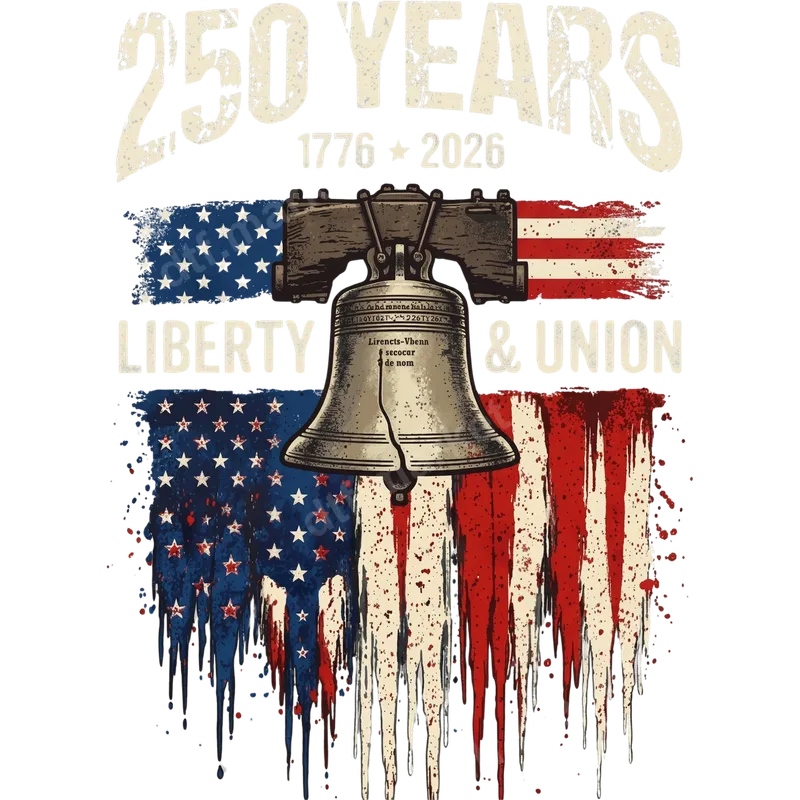 See allThis striking DTF transfer commemorates 250 years of American independence, bridging 1776 to 2026. The design features a grunge-style distressed American flag, complete with dripping red and blue, framing an iconic Liberty Bell. Bold text declares "LIBERTY & UNION," making this a powerful and ready to press statement of national pride. It's an ideal choice for celebrating foundational American values. This patriotic heat transfer is perfect for anyone who loves America and its history. Ideal for Fourth of July celebrations, Memorial Day, Veterans Day, or simply showcasing your pride year-round. It makes a thoughtful gift for veterans, history buffs, active military personnel, or anyone who cherishes American heritage. Customize apparel for family reunions, commemorative events, or as unique merchandise. Our high-quality apparel transfers are incredibly versatile and easy to apply. Designed for cotton, polyester, and most fabric blends, this heat press design ensures professional results. Simply use a heat press at 300-325°F for 15 seconds with medium pressure, then cold peel. For those without a professional press, a household iron can also be used with care. No tedious weeding or layering, just a crisp iron on transfer every time. Experience the superior quality of our direct to film transfers. Each design boasts vibrant colors, excellent wash durability, and resistance to cracking or fading. Printed on premium DTF film with a strong, flexible adhesive, our ready to press transfers provide a soft, smooth feel on your garments. Create long-lasting, professional-looking custom shirts and accessories with ease.