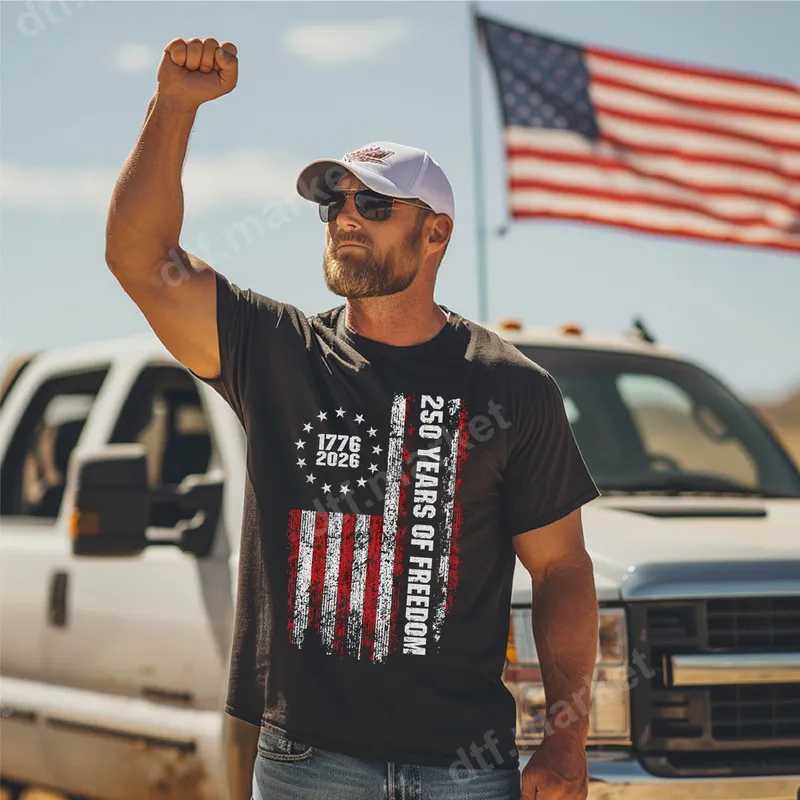 250 Years of Freedom 1776-2026 Distressed American Flag DTF Transfer