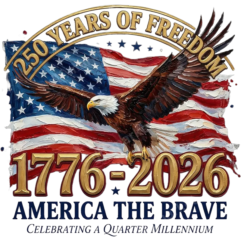 See allCommemorate a quarter millennium of American liberty with this exceptional "250 Years of Freedom" DTF transfer. This vibrant design showcases a majestic bald eagle soaring before a beautifully textured, waving American flag, accented with the significant dates "1776-2026" and the inspiring phrase "AMERICA THE BRAVE: Celebrating a Quarter Millennium." This ready to press transfer captures the spirit of patriotism and national pride, perfect for creating impactful apparel. This patriotic heat transfer is ideal for anyone who cherishes American history and values freedom, including veterans, active military, history enthusiasts, and proud citizens. It makes a fantastic gift for family and friends, or a compelling design for events like the Fourth of July, Memorial Day, Veterans Day, or the upcoming 2026 Bicentennial celebrations. Create custom apparel or memorable gifts that truly stand out and honor the nation's enduring spirit. Applying this heat press design is incredibly straightforward. It's suitable for a wide range of fabrics, including cotton, polyester, and various blends. For best results, press at 300-325°F for 15 seconds with medium pressure using a professional heat press. A household iron can also be used with careful application. Unlike traditional vinyl transfers, there's no tedious weeding required, making your crafting process simple and efficient. Our high-quality direct to film transfer technology ensures a brilliant, crack-resistant image that feels soft to the touch. Each apparel transfer is crafted from durable, professional-grade DTF film with a strong adhesive, guaranteeing long-lasting wear and vibrant colors that won't fade after washing. Create stunning, professional-looking garments with ease and pride.
