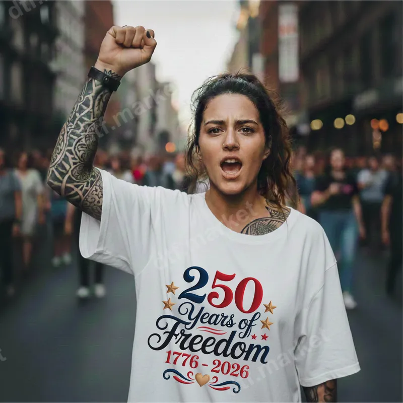 See allThe "250 Years of Freedom 1776-2026" DTF transfer proudly commemorates a quarter-millennium of American independence. This patriotic design features bold red and blue numbering alongside elegant script, accented with golden stars and subtle heart details, reflecting a spirit of liberty and national pride. It's a striking ready to press design, perfect for celebrating a significant milestone in American history. This versatile direct to film transfer is ideal for history enthusiasts, patriots, veterans, and anyone proud of American heritage. It’s perfect for the 4th of July, Memorial Day, Veterans Day, Juneteenth, or any gathering celebrating US history and freedom. Use it to create unique gifts or custom apparel for historical events and community celebrations. Applying this high-quality iron on transfer is effortless. It adheres beautifully to a wide range of fabrics like cotton, polyester, and blends, ensuring a professional finish. For best results, use a heat press at 300-325°F for 15 seconds with medium pressure. It can also be applied with a household iron, making it accessible for everyone, with no tedious weeding required. Experience superior quality with this durable heat transfer. Our transfers feature vibrant, crack-resistant colors and a soft hand feel, looking fantastic wash after wash. Each design is printed on professional-grade DTF film with strong adhesive, guaranteeing long-lasting wear and exceptional detail for all your custom apparel projects.