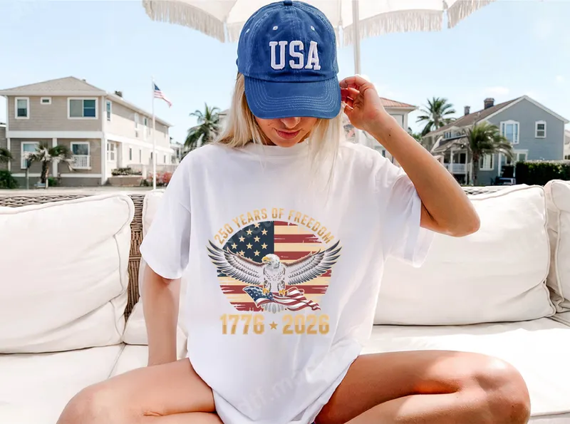 See allCommemorate a momentous occasion with this striking 250 Years of Freedom DTF transfer. This patriotic design features a majestic bald eagle with outstretched wings, clutching an American flag, set against a distressed circular backdrop of the stars and stripes. Adorned with "250 YEARS OF FREEDOM" in an arc above and the significant years "1776 * 2026" below, this ready to press transfer embodies a powerful tribute to American heritage and liberty. This commemorative design is perfect for patriots, veterans, history enthusiasts, and anyone proud to celebrate America's enduring spirit. Ideal for special historical anniversaries, 4th of July festivities, Memorial Day, Veterans Day, or as a thoughtful gift for those who cherish American history and values. Showcase your pride at parades, historical events, or everyday wear with this meaningful apparel transfer. Applying this heat press transfer is straightforward, making custom apparel creation simple. It's designed for a wide range of fabrics including cotton, polyester, and blends. For best results, use a heat press at 300-325°F for 15 seconds with medium pressure, followed by a cold peel. Even a household iron can achieve great results by applying firm, even pressure. Enjoy the convenience of a ready-to-press design with no weeding required. Crafted with professional-grade DTF film, this heat press ready design ensures vibrant colors that resist cracking and fading, maintaining their brilliance wash after wash. The strong adhesive provides excellent durability and a soft, flexible feel on your chosen garment, allowing for comfortable wear. Elevate your wardrobe with a high-quality, long-lasting t-shirt transfer that truly stands out.