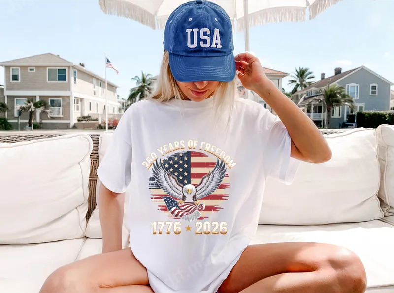 See allCommemorate a momentous occasion with our exclusive "250 Years of Freedom" DTF transfer. This striking design proudly showcases a majestic bald eagle, wings outstretched, clutching a flowing American flag, set against a distressed stars and stripes background. Arched above the eagle are the words "250 YEARS OF FREEDOM," with the significant dates "1776 ★ 2026" boldly displayed below, marking a quarter-millennium of American independence. This ready to press design embodies patriotism and historical pride. This powerful heat press ready design is perfect for proud Americans, history enthusiasts, veterans, and military families. It's ideal for celebrating national holidays like the Fourth of July, Memorial Day, and Veterans Day, or for everyday display of your American spirit. Use this eye-catching graphic to create meaningful gifts or to show support at patriotic events and historical commemorations. Applying this vibrant iron on transfer is simple and efficient. Our DTF transfers are compatible with a wide range of fabrics, including cotton, polyester, and various blends, making them versatile for many projects. For best results, use a heat press at 300-325°F for 15 seconds with medium pressure. It can also be applied with a household iron (follow specific instructions). The best part? There’s no weeding or masking required, saving you valuable time and effort. Experience professional-grade quality with every t-shirt transfer. Our DTF film ensures your designs are incredibly vibrant, detailed, and boast exceptional color fidelity. The transfers are crack-resistant, offer excellent wash durability, and have a soft-hand feel, blending seamlessly with the garment. Elevate your apparel with a durable, high-quality heat transfer design that truly stands out.