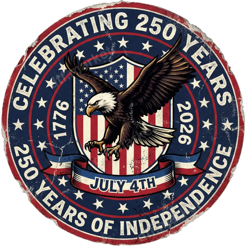 See allShow your American pride with this commemorative DTF transfer celebrating 250 years of Independence from 1776 to 2026. This striking design features a majestic bald eagle soaring over a distressed American flag shield, encircled by the bold text "CELEBRATING 250 YEARS OF INDEPENDENCE." The vintage, rustic aesthetic adds character, making it a timeless piece of patriotic apparel. This premium, ready to press transfer is perfect for honoring our nation's history and future. This patriotic heat transfer is ideal for anyone who loves their country, including veterans, active military personnel, history enthusiasts, and families celebrating national holidays. It's an excellent choice for July 4th barbecues, Memorial Day gatherings, Flag Day events, or as a thoughtful gift for a history teacher or a proud American. Create custom shirts, hats, or bags that stand out and declare your allegiance. Applying this iron on transfer is simple with a heat press at 300-325°F for 15 seconds with medium pressure, or even with a household iron. Our DTF transfers are designed for effortless application on a wide range of materials, including cotton, polyester, and various blends, without the hassle of weeding or layering vinyl. You'll achieve professional results with ease, even for complex designs. Experience exceptional quality with every direct to film transfer. Our designs boast vibrant colors, superior elasticity to prevent cracking, and a soft-to-touch finish that feels great on any garment. This durable t-shirt transfer is made with professional-grade DTF film and strong adhesive, ensuring your custom apparel looks fantastic and lasts through countless washes. Honor America's enduring spirit with a transfer built to impress.