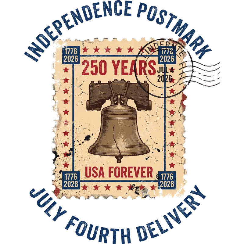 See allThis vintage-style DTF transfer features a commemorative postage stamp design celebrating "250 YEARS" of US Independence, from 1776 to 2026. A central cracked Liberty Bell, surrounded by patriotic stars, symbolizes freedom. Arched text "INDEPENDENCE POSTMARK" and "JULY FOURTH DELIVERY" highlights this American founding tribute. This ready to press design offers a unique blend of historical reverence and antique aesthetic for custom apparel. This patriotic heat transfer is perfect for showing American pride during 4th of July, Memorial Day, or national holidays. Ideal for history enthusiasts, veterans, military families, or anyone appreciating heritage. Use this heat press design for unique gifts, group outfits, or to add historical significance to t-shirts, hoodies, and bags. Applying this versatile apparel transfer is simple. Our premium direct to film transfers adhere flawlessly to cotton, polyester, and blends. Use a heat press at 300-325°F for 15 seconds with medium pressure, then peel cold. A household iron can also be used (follow instructions). This iron on transfer is ready to go, saving you time from weeding. Experience exceptional quality with our professional-grade DTF transfer. Printed with vibrant, long-lasting inks on durable film, this t-shirt transfer offers excellent crack resistance and a soft, flexible feel. The strong adhesive ensures your design stays put wash after wash, maintaining crisp details. Create custom apparel that looks professional and stands the test of time.