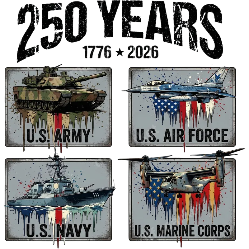 250 Years US Military Branches DTF Transfer | Army, Air Force, Navy, Marines