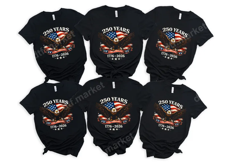 See allCelebrate a monumental milestone in American history with our "250 Years 1776-2026" DTF transfer. This vibrant design features a majestic bald eagle with outstretched wings, proudly soaring before a waving American flag, all encapsulated within a festive banner. It's a powerful and symbolic image, perfect for showcasing national pride and commemorating a quarter-millennium of independence and liberty. This high-quality direct to film transfer is ready to press onto your favorite apparel. This patriotic heat transfer is ideal for anyone who loves America and its rich history. It's perfect for veterans, active military personnel, history enthusiasts, or families looking to celebrate significant national anniversaries. Use it to create custom apparel for Fourth of July parties, Memorial Day gatherings, Veterans Day events, or any occasion that calls for a display of American pride. It also makes a thoughtful and unique gift for fellow patriots. Applying this incredible heat press design is simple and efficient. Our transfers are designed for effortless application on various fabrics, including cotton, polyester, and blends. For best results, use a heat press at 300-325°F for 15 seconds with medium pressure, then hot peel. For those without a heat press, a household iron can also be used with careful application. Best of all, there's absolutely no weeding required, saving you time and effort. Experience professional-grade quality with every apparel transfer. Our DTF prints boast incredibly vibrant colors and exceptional detail that stand out. They are crack-resistant, wash-durable, and incredibly soft to the touch, ensuring comfort and longevity. Made with premium DTF film and strong adhesive, this shirt design provides a durable, long-lasting finish that will keep your patriotic message looking sharp for years to come.