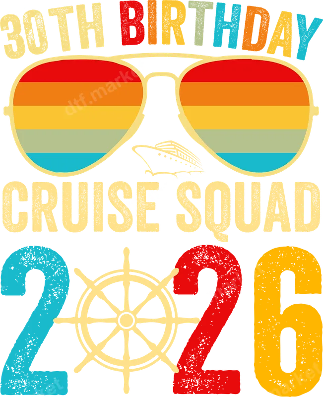 30th Birthday Cruise Squad 2026 DTF Transfer | Retro Sunglasses Design