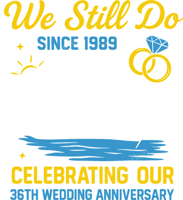 See allThis charming DTF transfer celebrates a significant milestone: a 36th wedding anniversary. Featuring the heartwarming phrase "We Still Do Since 1989" alongside elegant wedding rings, a playful sun, and a delightful cruise ship scene with palm trees and seagulls, this design captures the joy of enduring love and cherished memories. It's a vibrant, ready to press design that brings a festive and romantic feel to any garment or accessory. The "Celebrating Our 36th Wedding Anniversary" text at the bottom firmly anchors the occasion, making it a perfect tribute to decades of commitment. This unique heat transfer is ideal for couples commemorating their own 36th anniversary, or for family and friends looking for a special gift. It’s perfect for anniversary parties, celebratory cruises, or even as a surprise gift for parents or grandparents. Imagine matching custom t-shirts for an anniversary trip or personalized tote bags for a special gathering. It’s also a thoughtful way to celebrate a 1989 wedding date, evoking nostalgia and a sense of shared history. Applying this versatile iron on transfer is simple, making it accessible for both beginners and experienced crafters. Our high-quality apparel transfer works beautifully on a wide range of materials, including cotton, polyester, and various fabric blends. For best results, use a heat press at 300-325°F for 15 seconds with medium pressure. It can also be applied with a household iron (follow included instructions for iron on decals). Enjoy the convenience of a ready to press transfer with no tedious weeding required. Experience superior quality with our direct to film transfer. These heat press designs boast incredibly vibrant colors that pop and sharp details that last. Engineered to be crack-resistant and soft to the touch, your finished apparel will be comfortable and durable. Each transfer is printed on professional-grade DTF film with a strong adhesive, ensuring a perfect bond to your chosen garment. Create professional-looking items that stand the test of time and wash after wash.