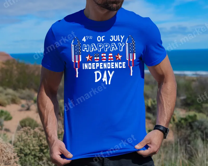 See allShow your patriotic spirit with this festive 4th of July Happy USA Independence Day DTF transfer. Featuring bold, vibrant text alongside two striking fireworks rockets adorned with the iconic stars and stripes of the American flag, this design captures the excitement of Independence Day. It's a premium ready to press transfer, ensuring a professional and high-quality finish for your apparel. Perfect for celebrating America's independence, this heat transfer is ideal for family barbecues, parades, fireworks shows, and any patriotic gathering. It makes an excellent choice for individuals, families, and businesses looking to create custom festive wear. Design matching t-shirts for your whole crew, or create unique gifts for friends and loved ones who cherish American pride. Our durable iron on transfer works seamlessly on a wide range of fabrics, including cotton, polyester, and various blends. Applying this design is simple with a heat press: set to 300-325°F for 15 seconds with medium pressure. For best results, allow it to cool completely before peeling the film (cold peel). No complicated weeding is required, making customization quick and easy. Experience superior quality with our Direct-to-Film (DTF) transfer technology. This apparel transfer boasts vibrant, true-to-color inks that resist cracking and fading, ensuring your design looks great wash after wash. The finish is incredibly soft to the touch, providing maximum comfort without the stiff feel of traditional vinyl. Elevate your garments with a long-lasting, professional-grade design.