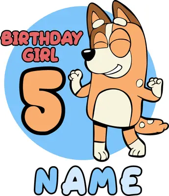 See allThis vibrant 'Birthday Girl 5' DTF transfer features an adorable cartoon dog, reminiscent of popular animated characters, ready to celebrate a special fifth birthday. The playful design, set against a cheerful blue background, includes bold 'BIRTHDAY GIRL' text and a prominent number '5', with space below for a personalized name. It's the perfect ready to press graphic to bring joy to any birthday outfit or gift. This charming design is perfect for parents, grandparents, or small businesses looking to create unique birthday apparel. Ideal for 5-year-old girls, it makes a fantastic iron on transfer for birthday party shirts, personalized gifts, or special keepsakes. Whether you're making a surprise gift for your daughter, niece, or a customer's child, this heat transfer design adds a custom, festive touch to any celebration. Applying this heat press transfer is simple and efficient. It works beautifully on a wide range of fabrics including cotton, polyester, and blends, and even nylon. Just use a heat press at 300-325°F for 15 seconds with medium pressure, or apply with a household iron. No tedious weeding is required – simply peel and press! It's ideal for custom t-shirts, cozy hoodies, baby onesies, playful tote bags, and more. For best results and lasting durability, wash garments inside out and tumble dry low. Experience premium quality with this ready to press transfer. It boasts vibrant, full-color printing with exceptional detail, ensuring your design truly pops. The transfer is crack-resistant, soft to the touch, and avoids the heavy, stiff feel often associated with vinyl transfers. Each direct to film transfer is printed on high-grade DTF film with a robust adhesive backing, guaranteeing professional, long-lasting results every time.
