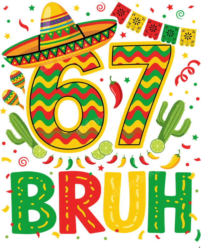 See allGet ready to celebrate with our festive '67 BRUH' DTF transfer, bursting with vibrant Mexican fiesta flair! This eye-catching design features the numbers '67' in a playful wavy pattern of red, yellow, and green, crowned with a classic sombrero. Below, the word 'BRUH' pops in matching colors, surrounded by cheerful elements like maracas, cacti, chili peppers, limes, papel picado banners, and confetti. It's a fun, bold, and ready to press heat transfer that’s perfect for adding humor and celebration to any garment. This unique design is ideal for anyone celebrating their 67th birthday with a sense of humor and a love for festive vibes. It makes an excellent gag gift, a memorable present for a friend, dad, grandpa, or uncle, or simply a standout design for your own party outfit. Whether it's a birthday bash, Cinco de Mayo, or a casual gathering, this heat press design brings a cheerful and amusing statement. Perfect for custom t-shirts, tank tops, or tote bags for a themed event. Our premium iron on transfer applies effortlessly to cotton, polyester, and blends. Use a heat press at 300-325°F for 15 seconds with medium pressure, then cool peel. This direct to film transfer comes completely ready for pressing; no weeding required like traditional vinyl transfers, saving you time. A household iron can also be used with care for this custom transfer. Experience professional-grade results with our high-quality DTF transfers. Designs boast vibrant colors that resist cracking, peeling, and fading, ensuring your garment looks fantastic wash after wash. The transfer feels soft, seamlessly integrating with fabric without stiffness. Our professional DTF film with strong adhesive guarantees a durable, long-lasting design, making your personalized items truly stand out.