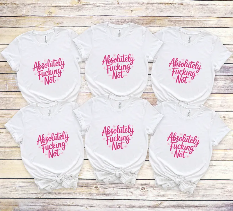 See allUnleash your inner sass with our 'Absolutely Fucking Not' DTF transfer. This vibrant pink script design, accented with delicate stars, is the ultimate ready to press statement piece. It perfectly captures a bold, no-nonsense attitude with a touch of playful humor. This premium direct to film transfer ensures your message is loud and clear on any apparel. This heat press transfer is ideal for anyone who appreciates witty, straightforward humor and isn't afraid to express themselves. Perfect for girls' nights out, casual gatherings, or adding a confident touch to your everyday wardrobe. It makes an excellent gift for friends with strong personalities or those who value their boundaries. Equip yourself with this iron on decal for an instant style upgrade. Our durable apparel transfer applies effortlessly to a wide range of fabrics, including cotton, polyester, and various blends. Achieve professional results using a heat press at 300-325°F for 15 seconds with medium pressure, followed by a cold peel. For home use, a household iron can also be used. Forget tedious weeding; this t-shirt transfer is truly ready to go, saving you time and effort. Experience superior quality with our professional-grade DTF film. Each design boasts vibrant, true-to-color pigments that resist cracking and fading, ensuring long-lasting wear. The soft-touch finish means your decorated garments remain comfortable. With strong adhesive properties, this heat press design creates a durable bond that withstands countless washes, keeping your sassy statement looking fresh.