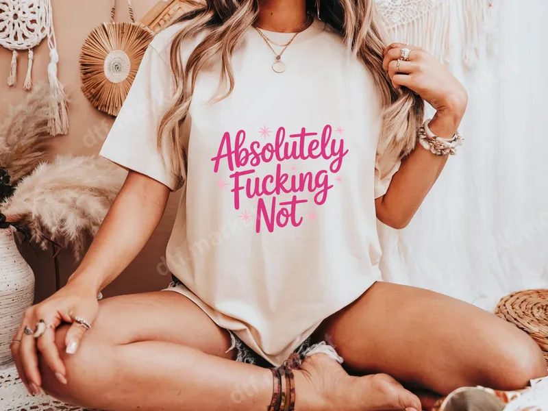 See allExpress your unapologetic sass with our 'Absolutely F***ing Not' DTF transfer. Featuring bold, playful pink script with subtle star accents, this ready to press design is the perfect way to convey your boundaries with humor and confidence. It's an instant classic for anyone who loves a bit of edgy wit in their wardrobe. This unique heat press design is crafted for individuals with a strong personality and a love for adult humor. It makes an excellent gift for friends, sisters, or anyone who appreciates sarcastic and funny apparel. Perfect for casual outings, parties, or just lounging, this iron on transfer lets you showcase your attitude effortlessly. It's also fantastic for DIY projects, bachelorette parties, girls' nights, or as a fun birthday surprise. Applying this apparel transfer is incredibly easy, perfect for both beginners and experienced crafters. Our high-quality DTF transfer works flawlessly on cotton, polyester, and various blends. For best results, apply with a heat press at 300-325°F for 15 seconds with medium pressure, then cold peel. A household iron can also be used with firm, even pressure. Unlike vinyl transfer, there's no weeding required, saving you time and effort. Experience professional-grade quality with every print. Our direct to film transfer boasts vibrant, crisp colors that remain stunning wash after wash, ensuring long-lasting wear. The design is crack-resistant, flexible, and has a soft-to-touch feel, seamlessly integrating into the fabric. Each heat transfer is printed on premium DTF film with a strong, reliable adhesive, guaranteeing a smooth and durable application that looks fantastic on any garment.