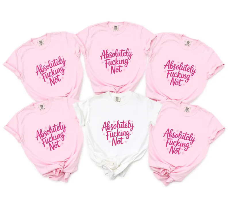 See allExpress your unapologetic attitude with our 'Absolutely F***ing Not' DTF transfer. Featuring bold, playful pink script lettering accented with subtle starbursts, this design is perfect for those who aren't afraid to say no. This high-quality direct to film transfer comes ready to press, making it easy to add a touch of sass to any garment. This sassy heat transfer is ideal for anyone with a strong personality or a dry sense of humor. It makes a fantastic gift for friends, sisters, or coworkers who appreciate a good laugh and aren't afraid to set boundaries. Perfect for casual wear, girls' nights out, or just adding some personality to your everyday wardrobe, this iron on decal will surely spark conversations. Applying your new shirt design is a breeze. Our heat press ready transfers work beautifully on a wide range of materials, including cotton, polyester, and their blends. For best results, use a heat press at 300-325°F for 15 seconds with medium pressure. A household iron can also be used following careful instructions. There's no complex weeding required, saving you time and effort. You'll love the professional finish and durability of our apparel transfer. This ready to press transfer boasts vibrant, crack-resistant colors that maintain their integrity wash after wash. The soft-touch feel ensures maximum comfort, unlike traditional vinyl transfers. Crafted on premium DTF film with a strong, long-lasting adhesive, your custom transfer will look great for years.