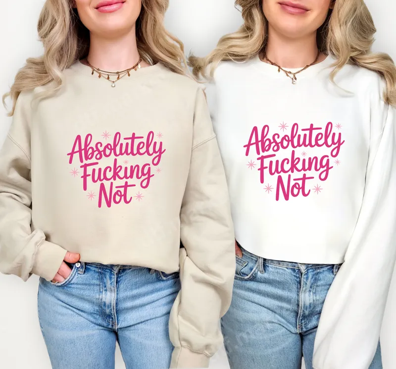 See allMake a bold statement without saying a word with our "Absolutely F***ing Not" DTF transfer. Featuring vibrant hot pink script lettering adorned with playful starbursts, this design exudes a confident, no-nonsense attitude. It’s the perfect ready to press transfer for expressing your savage side with a touch of fun. This high-quality direct to film transfer is designed for effortless application on your favorite garments. This sarcastic heat press design is ideal for anyone who loves to make a statement or has a sharp wit. It's a fantastic choice for friends, family, or even yourself, for casual wear, parties, or just everyday humor. Perfect for adding a personalized touch to bachelorette party shirts, girls' trip apparel, or as a funny gag gift. Embrace your inner sass and let your clothing do the talking with this unapologetic iron on transfer. Applying your new custom transfer is simple and quick! Our durable heat press ready DTF transfers work seamlessly on a wide variety of materials, including 100% cotton, polyester, and blends. For best results, use a heat press at 300-325°F for 15 seconds with medium pressure, then cold peel. A household iron can also be used with care. Enjoy hassle-free customization with absolutely no weeding required! Crafted for exceptional quality, this apparel transfer boasts incredibly vibrant colors that pop and remain true wash after wash. The design is highly crack-resistant and stretches with your fabric, ensuring long-lasting durability. You'll love the soft, lightweight feel that integrates perfectly with your garment, unlike bulky vinyl. Each transfer is printed on professional-grade DTF film with a strong adhesive, guaranteeing a smooth and successful application.