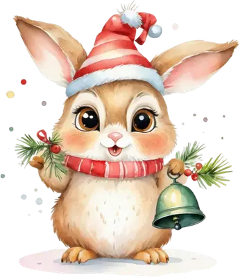 Adorable Christmas Bunny DTF Transfer | Festive Rabbit Santa Hat & Bell