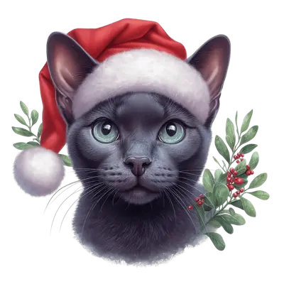 Adorable Christmas Cat DTF Transfer | Santa Hat & Holly