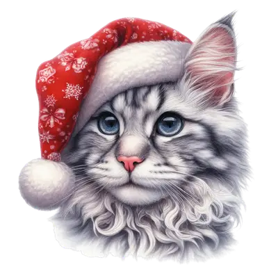 Adorable Christmas Cat in Santa Hat | Ready to Press DTF Transfer
