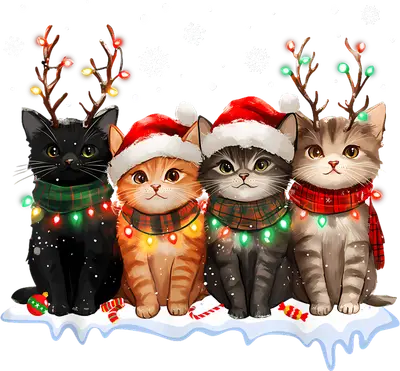 Adorable Christmas Cats DTF Transfer | Holiday Kittens with Lights