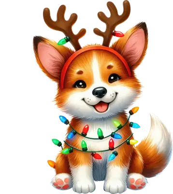 Adorable Christmas Corgi Reindeer Antlers DTF Transfer