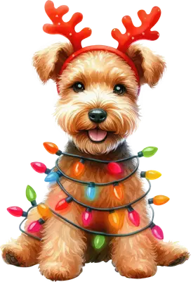 Adorable Christmas Dog Reindeer Antlers & Lights DTF Transfer