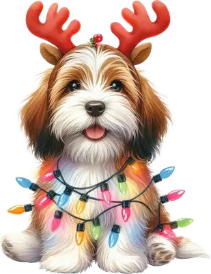 Adorable Christmas Dog Reindeer Antlers Lights DTF Transfer