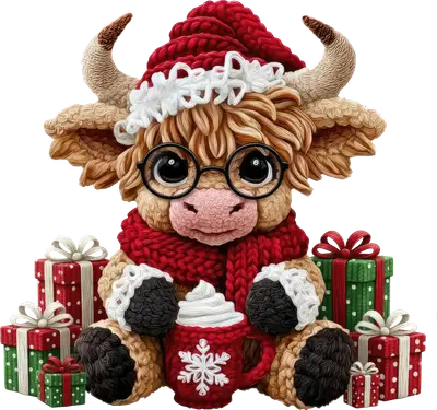 Adorable Christmas Highland Cow DTF Transfer | Cozy Knit Style