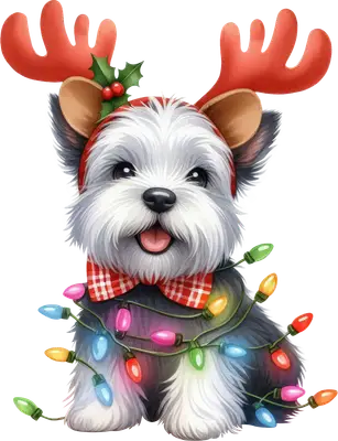 Adorable Christmas Puppy DTF Transfer with Lights & Antlers
