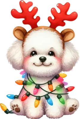 Adorable Christmas Puppy DTF Transfer with Reindeer Antlers & Lights